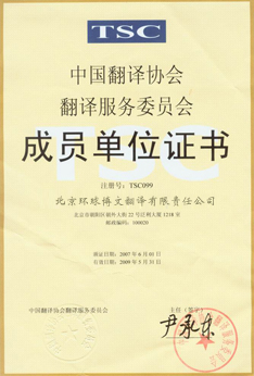 中國翻譯協(xié)會優(yōu)秀單位會員