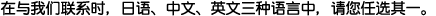 You may contact us in Japanese, Chinese or English.